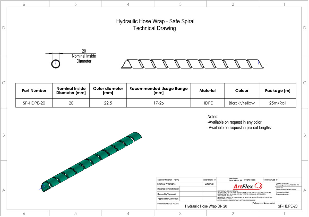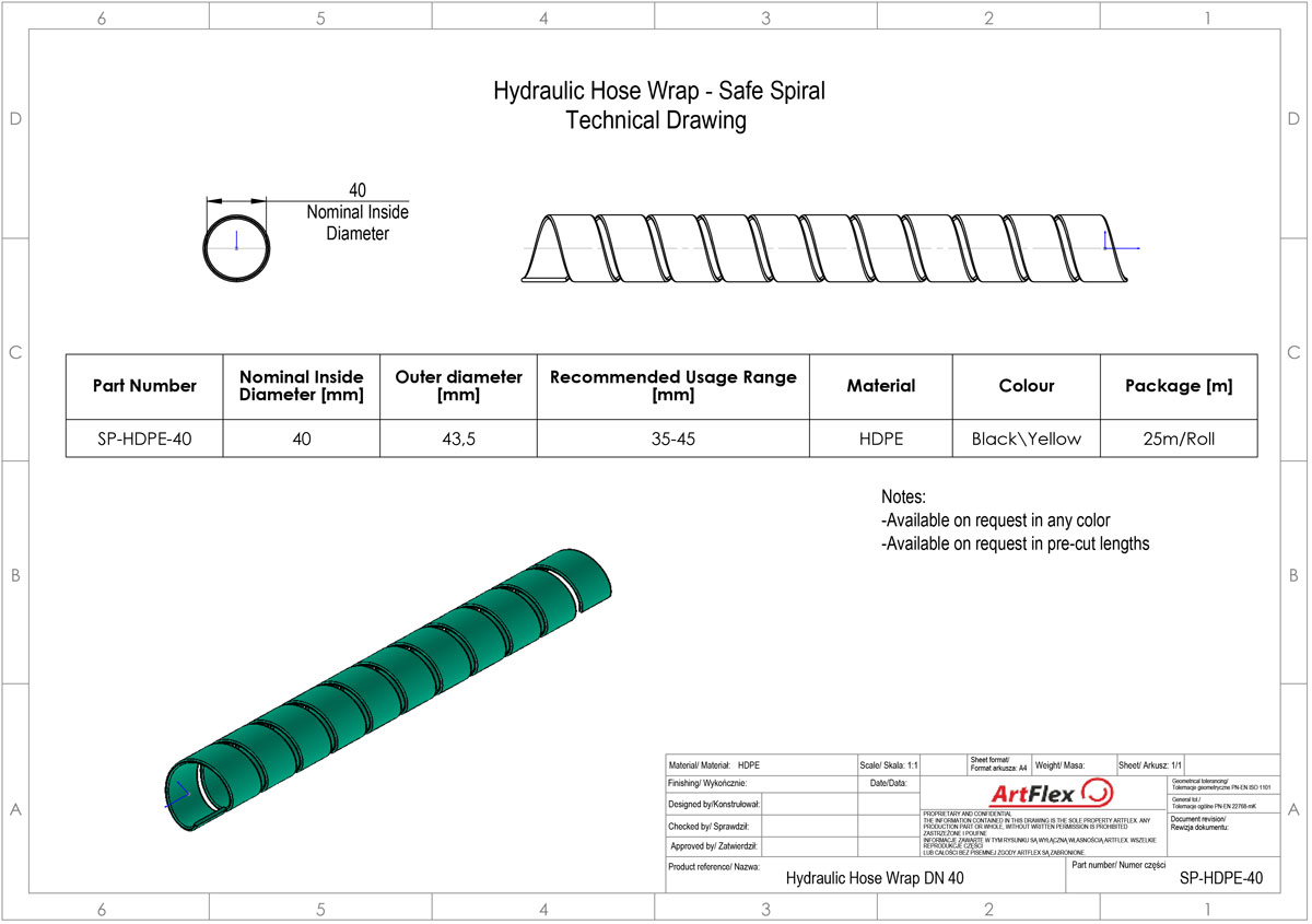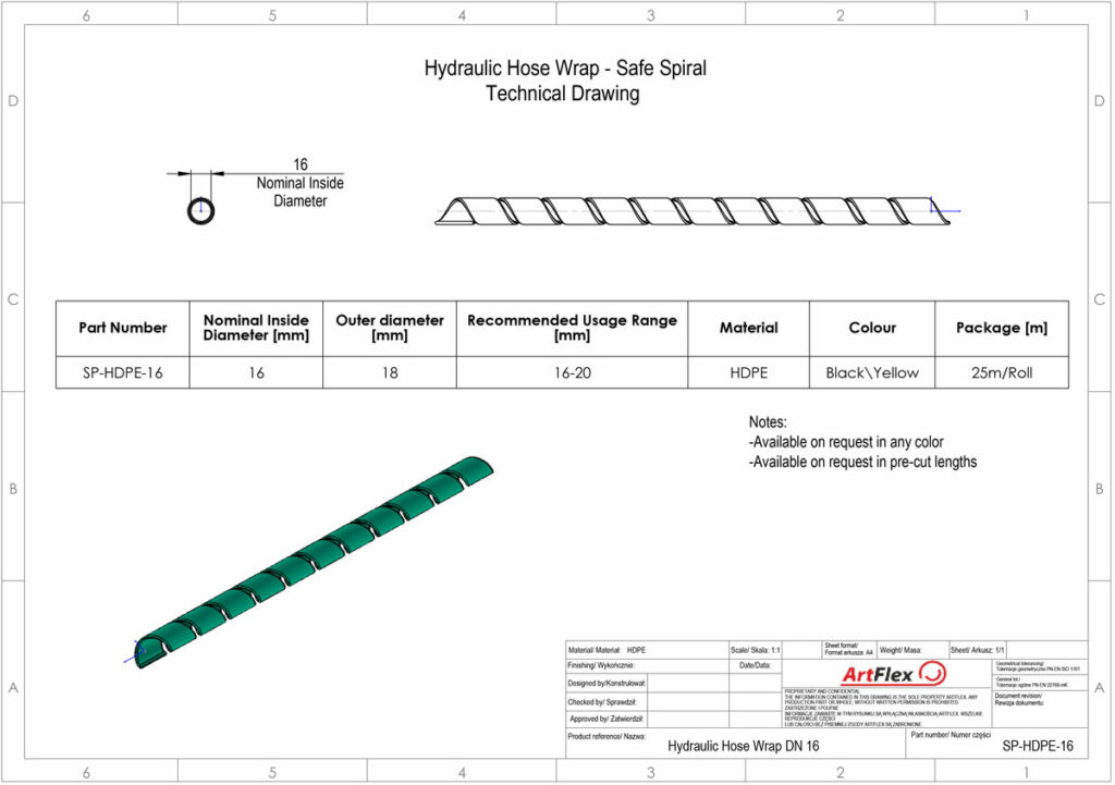 Spirale ochronne służą do ekonomicznej, wygodnej ochrony i przedłużenia żywotności węży hydraulicznych oraz pneumatycznych, kabli, przewodów i lin przed przedwczesnym zużyciem.